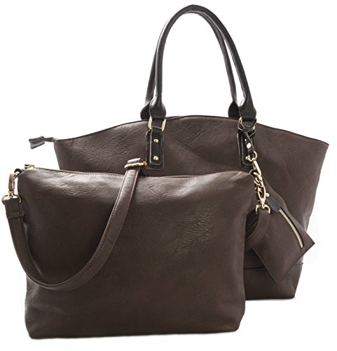 Best Seller! Big Handbag Shop Womens Designer Faux Leather Tote 3 in 1 Shopper Shoulder Handbag with a Make up Pouch Bag (Coffee) Review